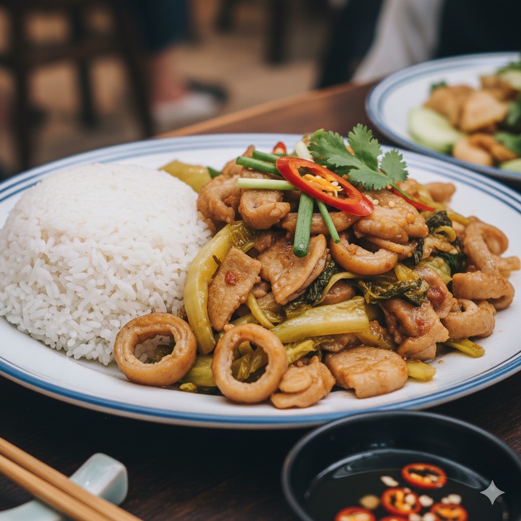 / Cơm lòng xào dưa (炒猪大肠饭)