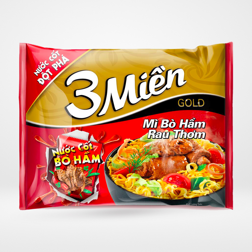 Mì 3 Miền Gold bò hầm rau thơm (gói 75g)