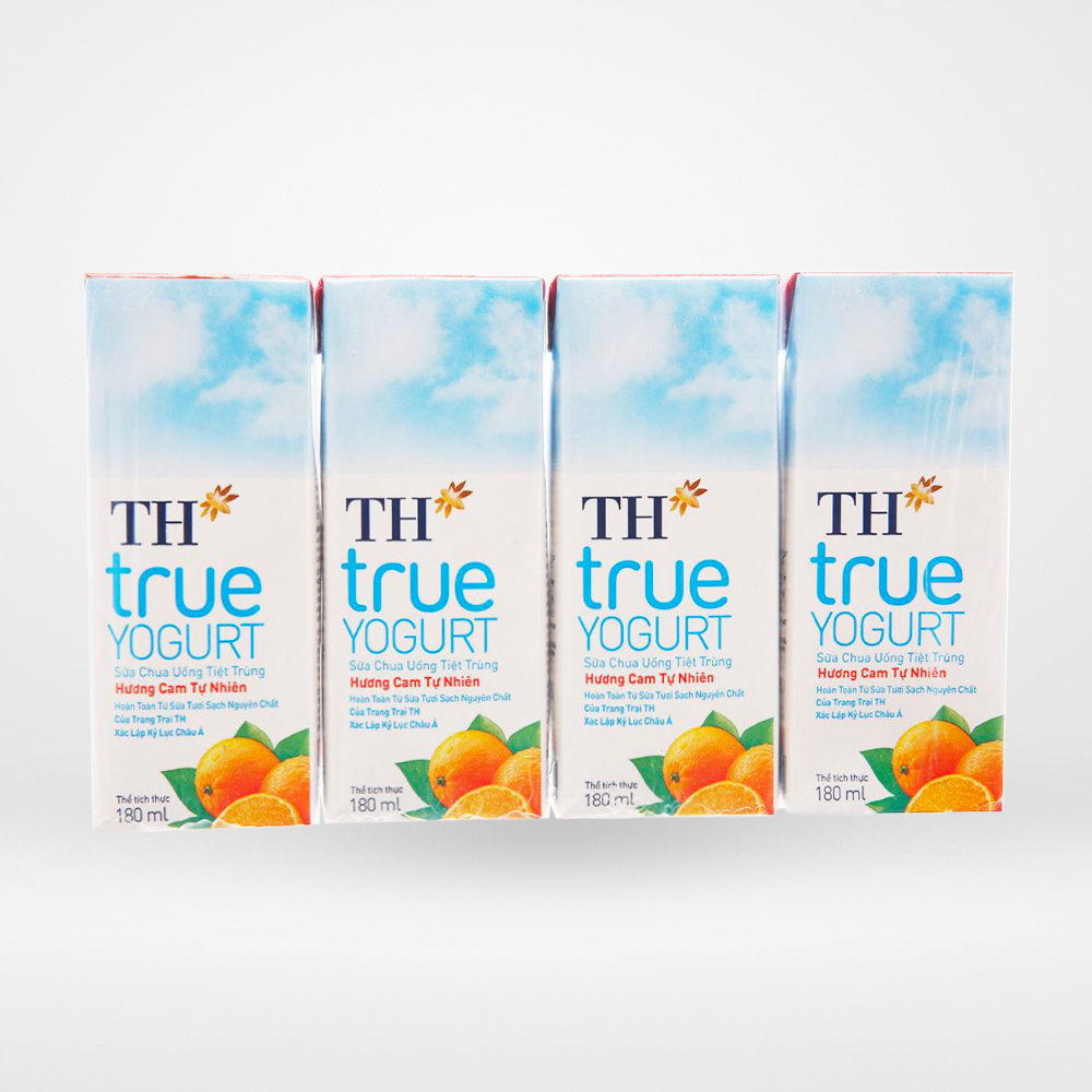 Lốc 6 Hộp Sữa Chua Uống Tiệt Trùng Hương Cam TH True Yogurt 180ml sử dụng hoàn toàn sữa tươi sạch nguyên chất của trang trại TH.