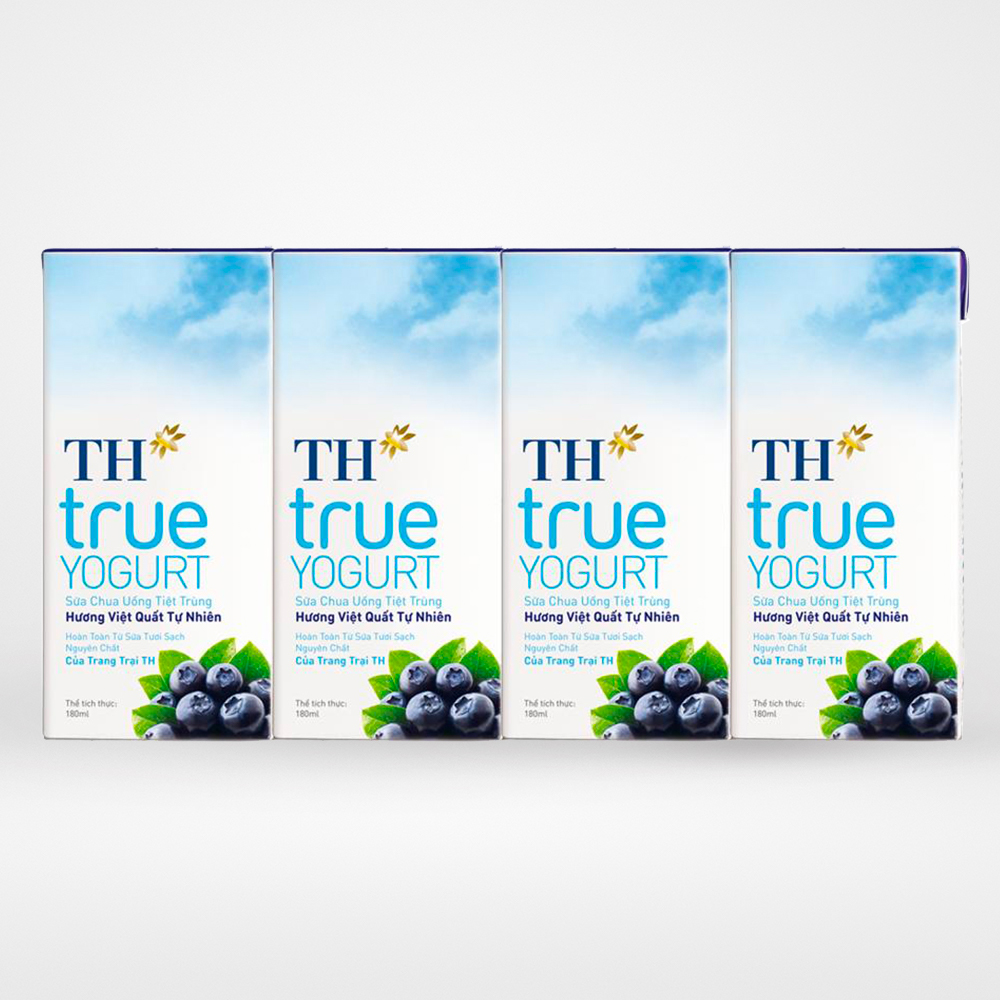 Sữa chua uống tiệt trùng hương Việt Quất tự nhiên. Sản phẩm được sản xuất từ nguồn nguyên liệu hoàn toàn sữa tươi sạch nguyên chất của trang trại TH, sản phẩm bổ sung bộ vi chất dinh dưỡng chất lượng cao được tính toán khoa học cung cấp bởi DSM – tổ chức dinh dưỡng hàng đầu Thế giới đặt tại Thụy Sĩ giúp hỗ trợ tối ưu sự phát triển trí tuệ và chiều cao của trẻệt