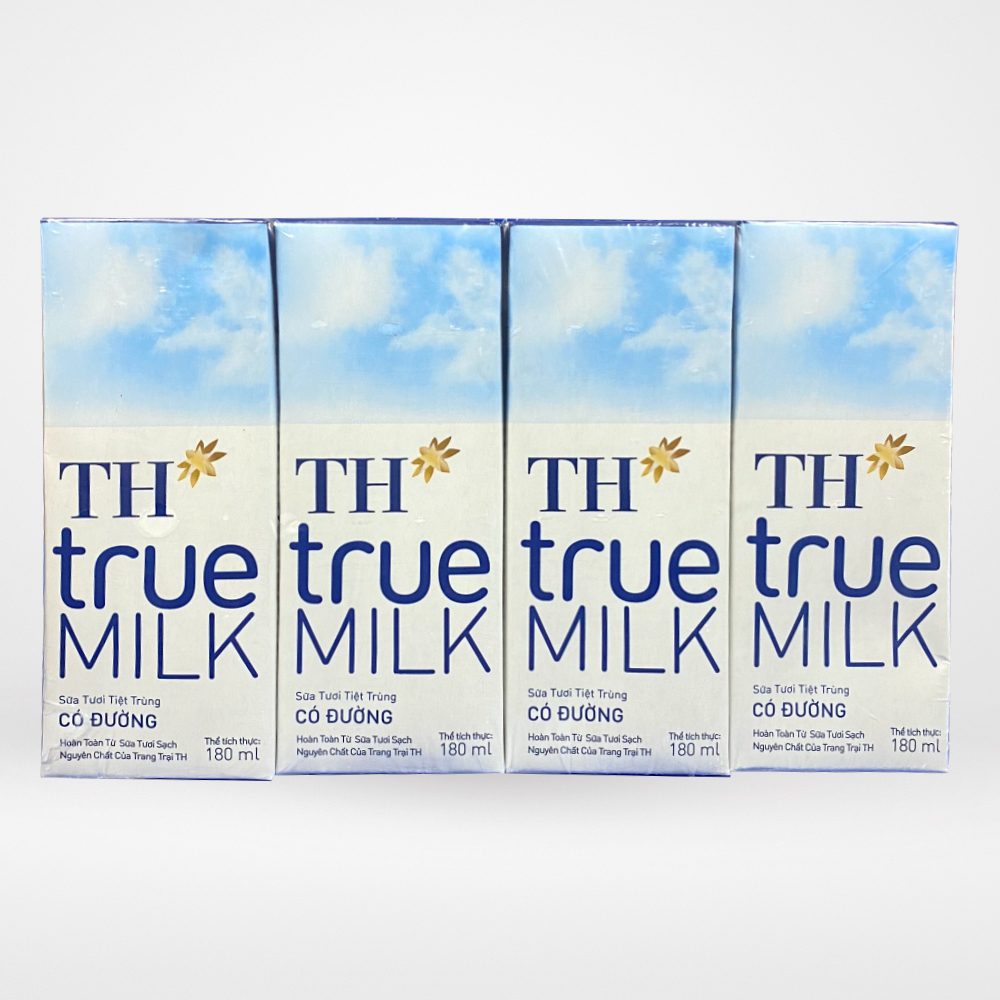 Sữa tươi tiệt trùng có đường TH True Milk hộp 180ml (vỉ 4 hộp x 180ml)